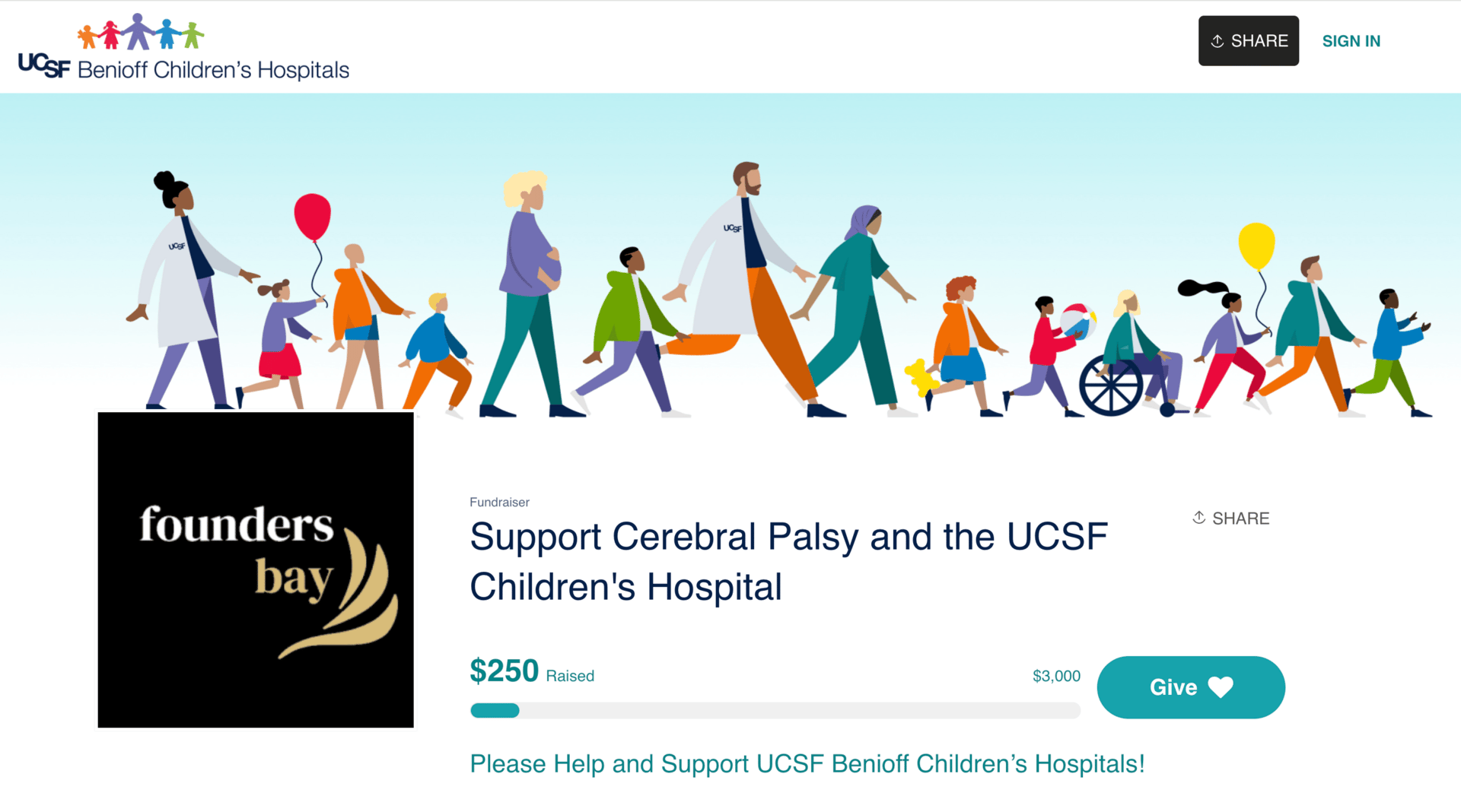 We’re working with UCSF Children's Hospital to support the UCSF Cerebral Palsy program, the same program that supported my son and me during our hardest chapter.