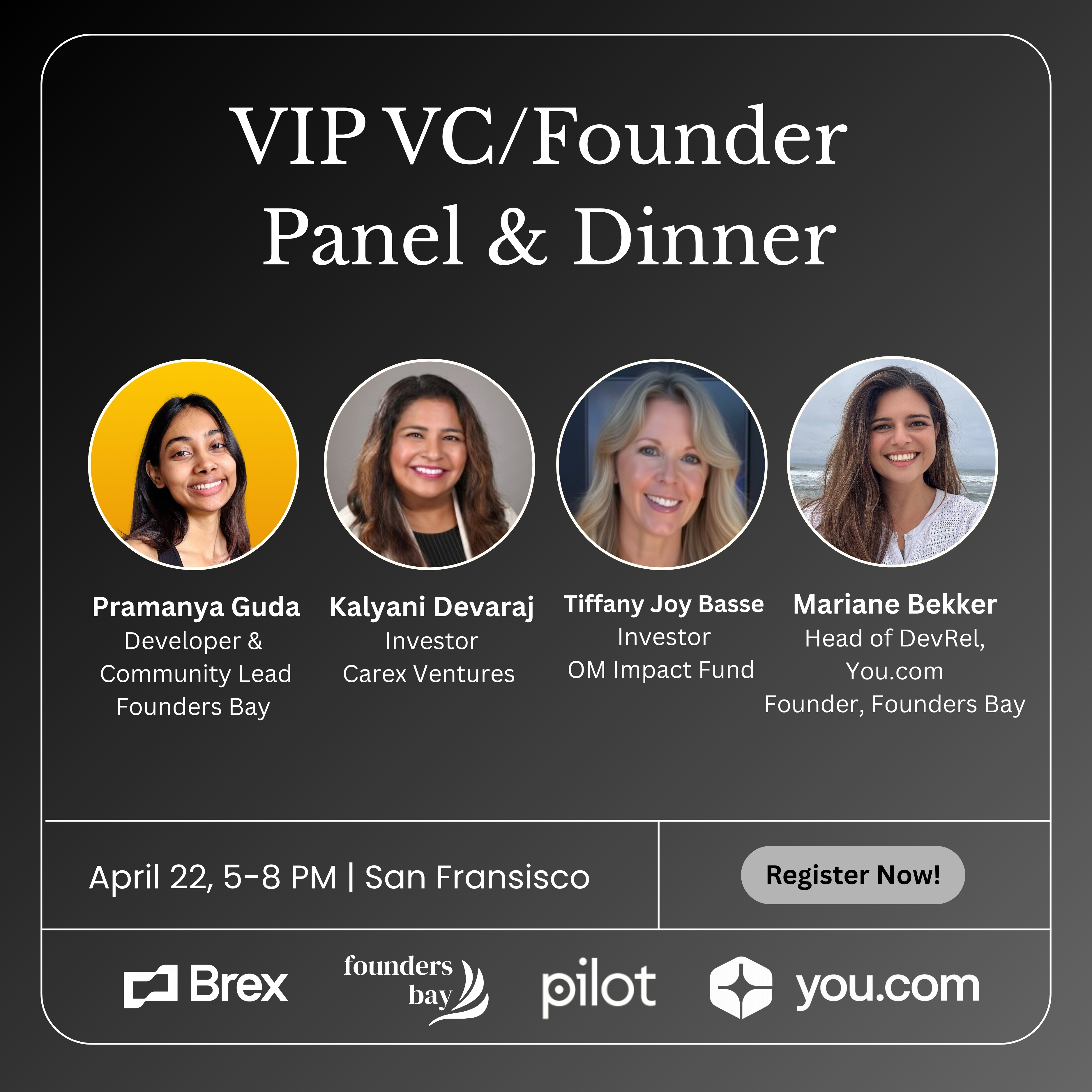 Hi! I'm Mariane Bekker, founder of Founders Bay, a community of 250k+ AI Builders rooted in Silicon Valley. I'm also Head of Developer Relations at You.com, and we just raised $100M to grow our AI Search Infrastructure!