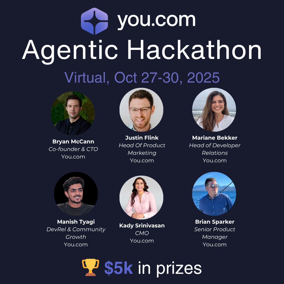 👉 You.com Virtual Agentic Hackathon - $5k in Cash Prizes! (10AM-5PM) [HOSTED BY ME]
