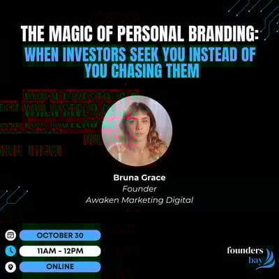 A strong personal brand can change the way opportunities come your way. Instead of constantly chasing investors, clients, or partners, the right brand presence makes them come to you. In this workshop, Bruna Grace will share how founders and leaders can create a brand that attracts attention and builds trust in competitive markets.